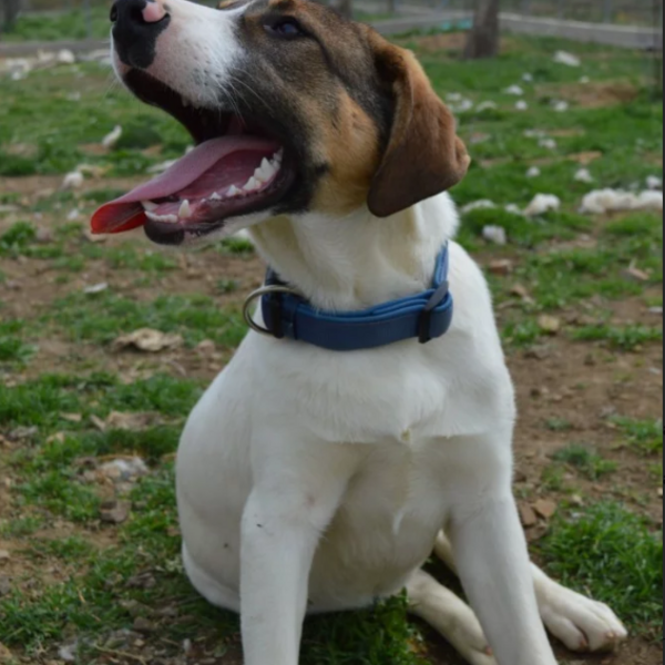 Clyde and his sister Bonny were left in the yard of a man who feeds dogs in a nearby village. He contacted us to take them, but we asked him to keep them until their vaccinations were completed to prevent them from getting sick in the shelter. At that time, they were only 4 months old and very thin. Now, they are both fully healthy, fully vaccinated, and incredibly happy and friendly.