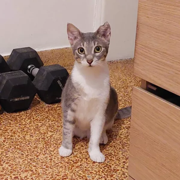 Ellis is a stunning grey-and-white beauty, about 2.5 years old, with the softest fur and the sweetest eyes. Her story began in a warehouse, where she was trapped for several days before being rescued.